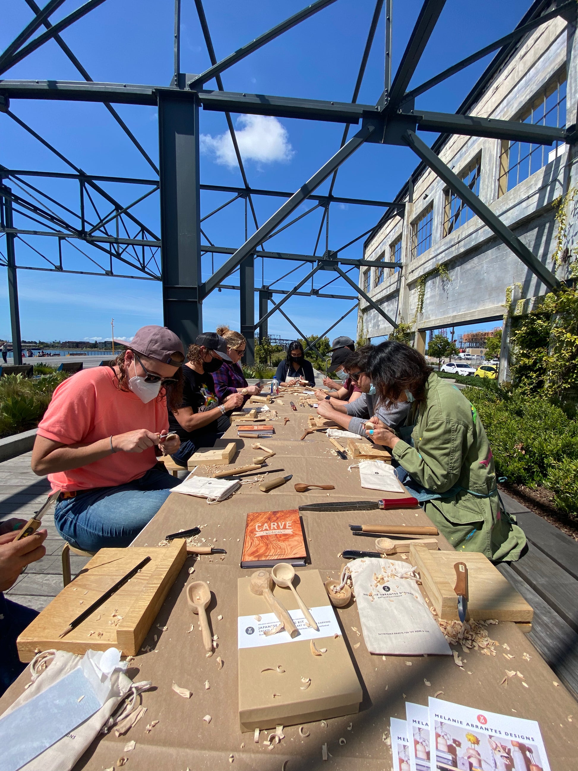 We will lead students in hand carving their own wooden spoon using traditional Japanese tools and techniques. The class will start with a discussion of different wood types, an explanation of the tools required, and an overview of the techniques used to cut wood. Once students have acquired a basic understanding, Melanie will lead them in carving the bowl of the spoon with the spoon gouge, then designing and whittling the handle and top of the spoon. When the final design has been reached, students will sand and finish their spoons with an all-natural finish. All tools will be provided to use during the workshop, with the option of purchasing the tools at a discounted rate to continue your spoon-making practice at home!