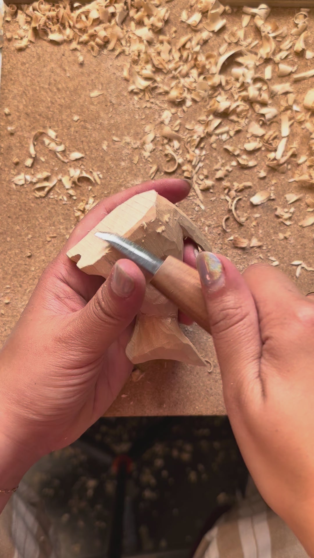 The double beveled blade is perfect for getting into tight spaces. With an ergonomic wooden handle, you can carve with this knife for hours without any sore muscles. The knife works well for both push-cuts and pull-cuts and can carve without having to worry about grain or carving direction.